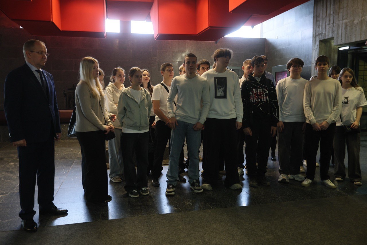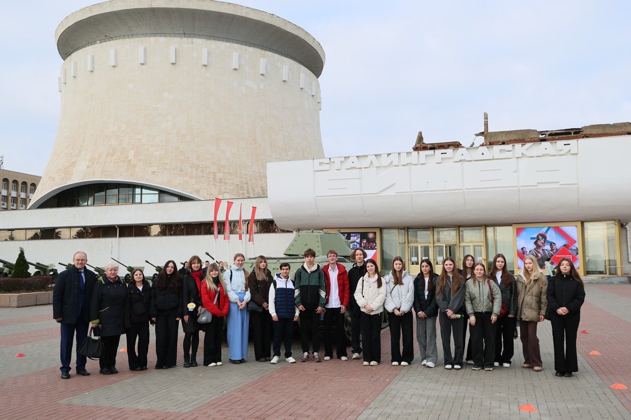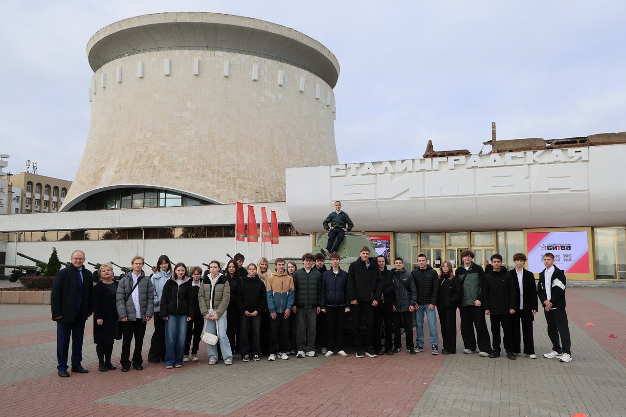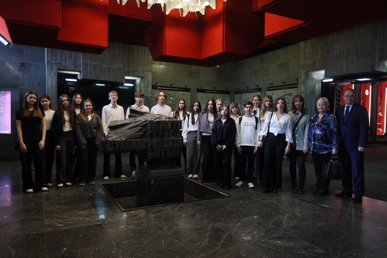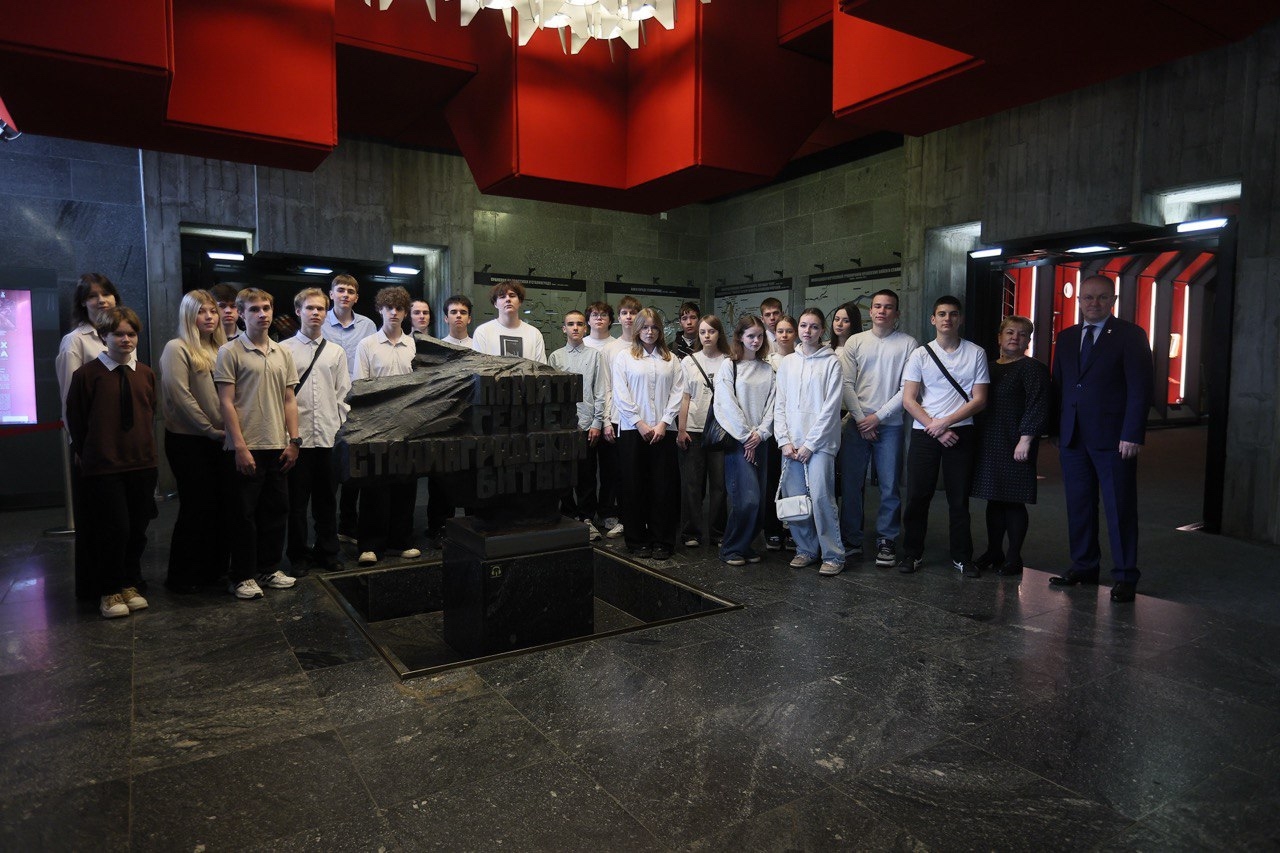 Вместе с юношами и девушками экскурсию посетил председатель Совета регионального отделения Партии СПРАВЕДЛИВАЯ РОССИЯ в Волгоградской области Дмитрий Калашников, который по доброй традиции встретил учеников перед началом погружения в историю великой битвы за город-герой.