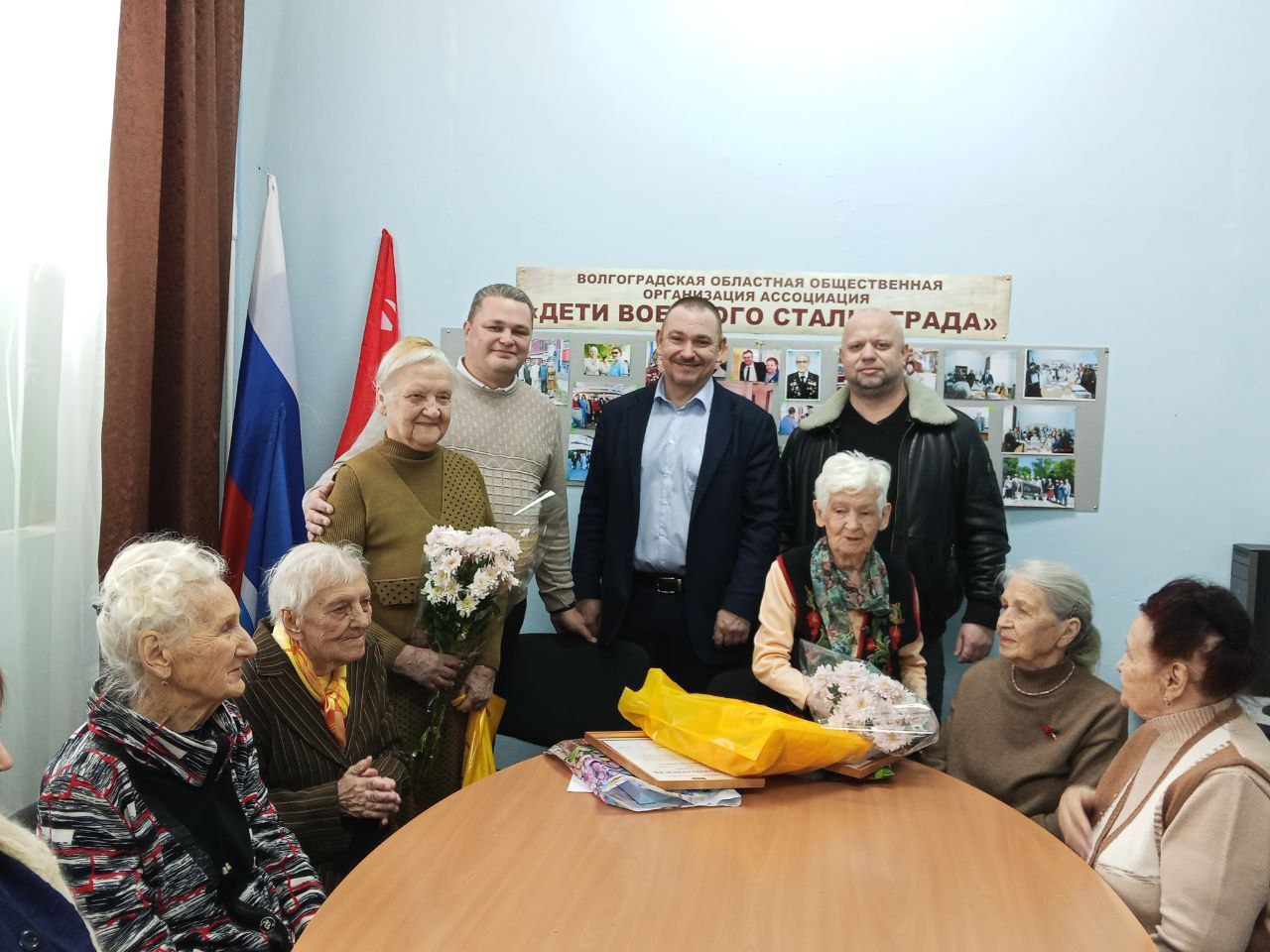Также депутат Волгоградской городской Думы поздравил с юбилеями почетного председателя Совета ветеранов Краснооктябрьского района Сахнович Марию Теодоровну и активистов областной организации "Дети военного Сталинграда": Фисунову Лидию Григорьевну и Федорову Нину Михайловну.