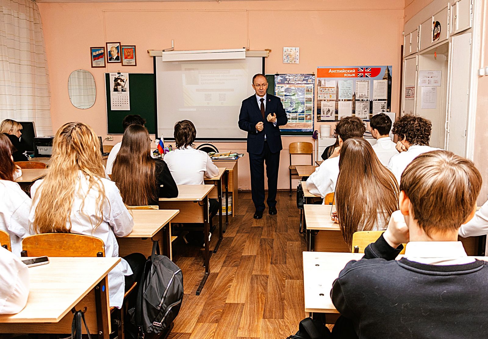 "Рассказал ребятам, из чего складывается работа депутата, какие задачи приходится решать ежедневно и как знания, полученные в школе, помогают мне в этой деятельности. Обсудили важность гражданской позиции и выбора профессии, ответственности за Родину и свой край", – сообщил Дмитрий Калашников.