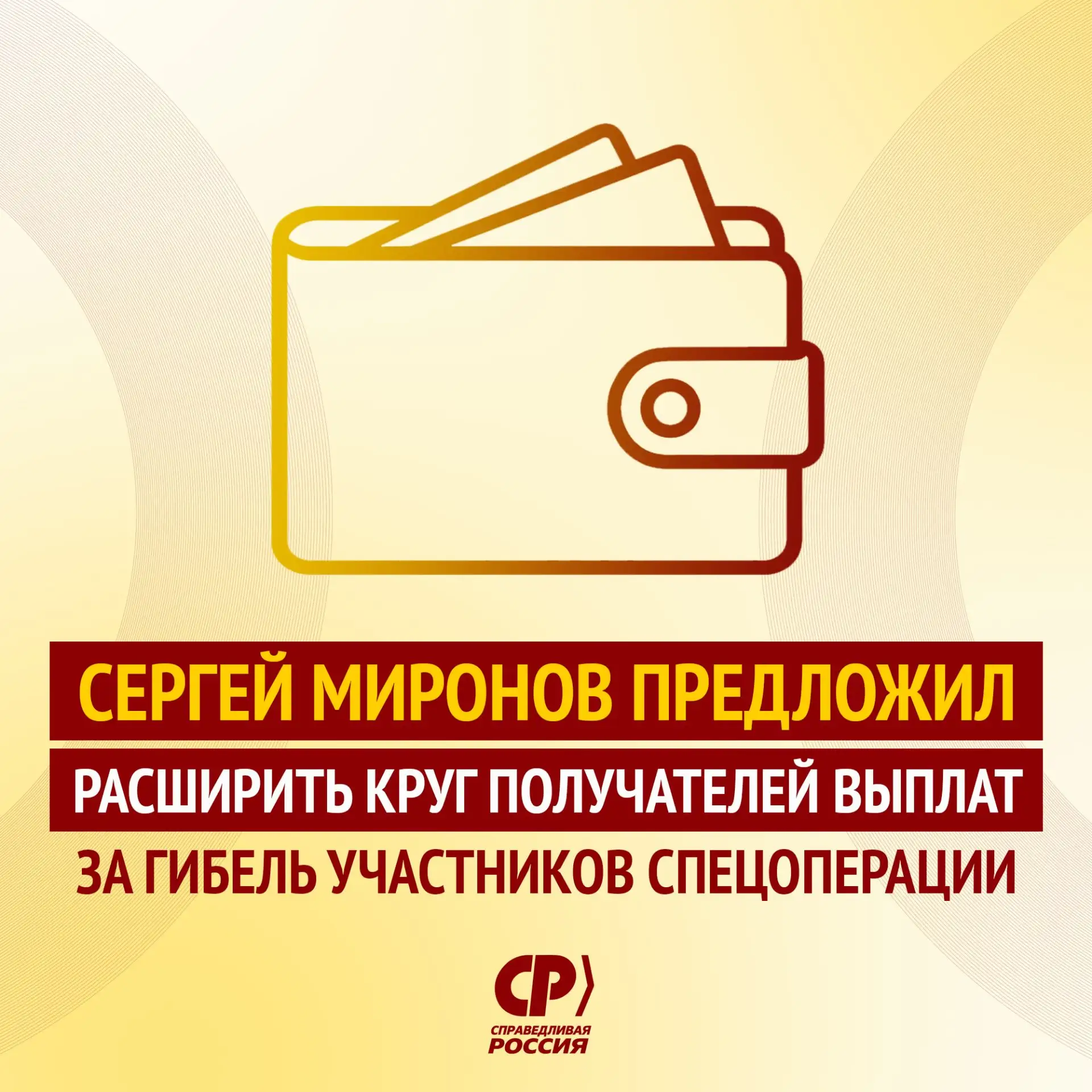 Сергей Миронов предложил расширить круг получателей выплат за гибель участников спецоперации