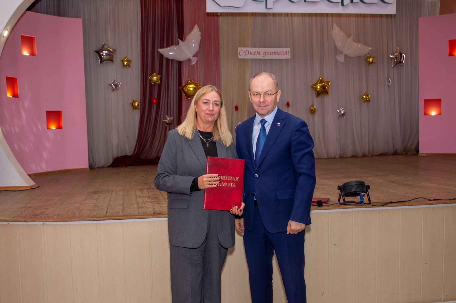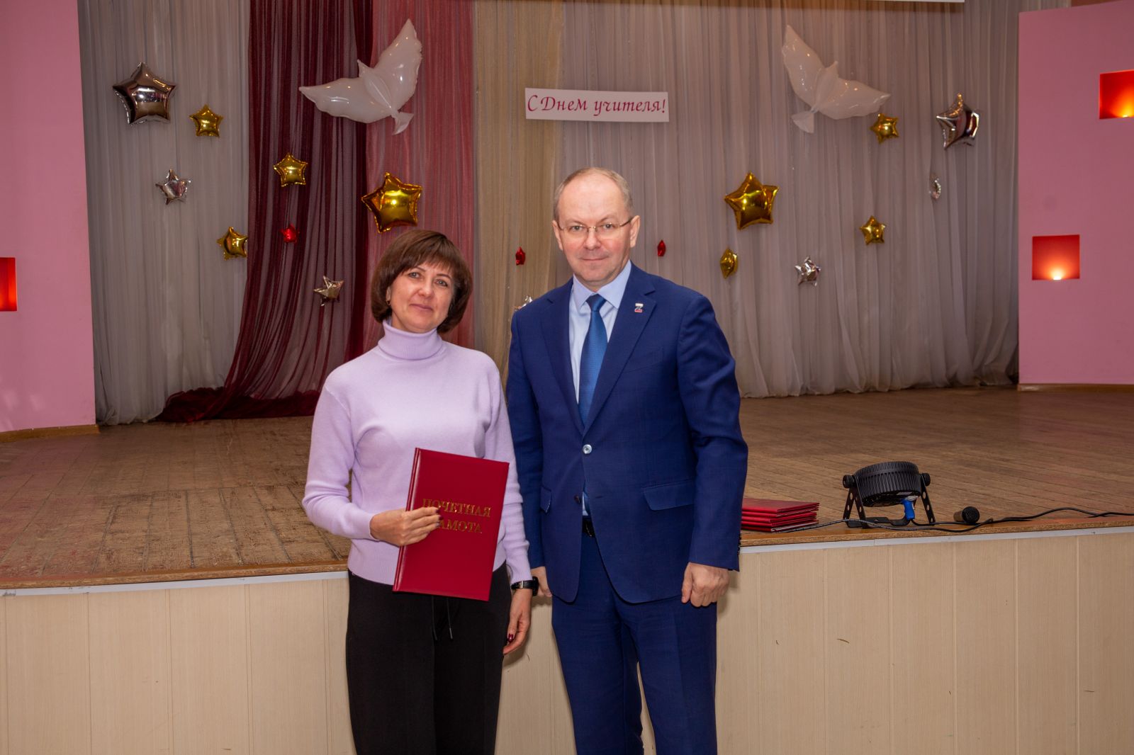 Председатель Совета регионального отделения Партии СПРАВЕДЛИВАЯ РОССИЯ – ЗА ПРАВДУ в Волгоградской области Дмитрий Калашников поздравил сотрудников муниципального общеобразовательного учреждения "Средняя школа № 134 "Дарование" Красноармейского района Волгограда" с профессиональным праздником.