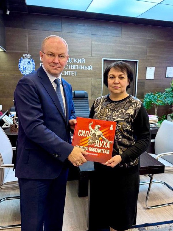Дмитрий Калашников вручил ректору ВолГУ партийную книгу памяти "Сила духа народа-победителя. Завещание потомкам"