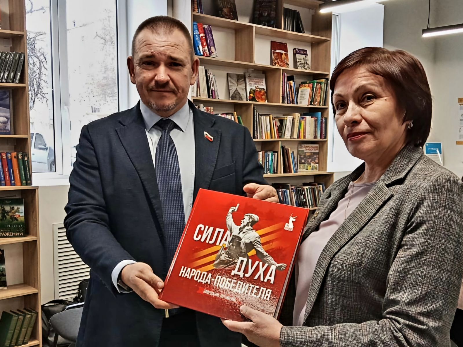 Волгоградский депутат СПРАВЕДЛИВОЙ РОССИИ передал книгу "Сила духа народа-победителя. Завещание потомкам" библиотеке Тракторозаводского района