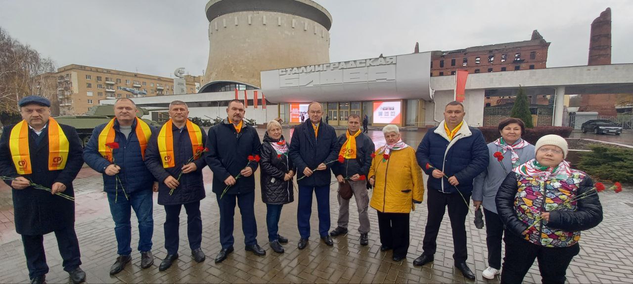 Представители регионального отделения в Волгоградской области возложили цветыьк бюстам Верховного Главнокомандующего Вооруженных сил СССР Иосифа Сталина, а также маршалов Георгия Жукова и Александра Василевского, которые разработали и руководили осуществлением легендарного плана "Уран".