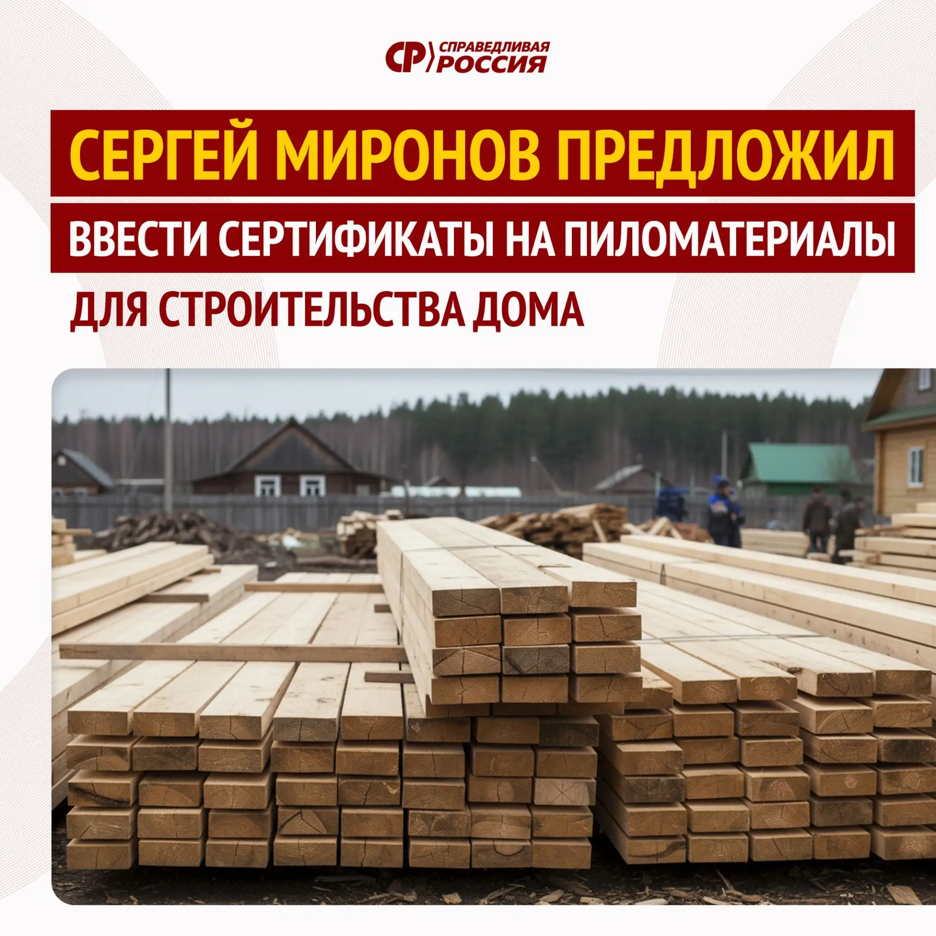❗️Сергей Миронов предложил ввести сертификаты на пиломатериалы для строительства дома